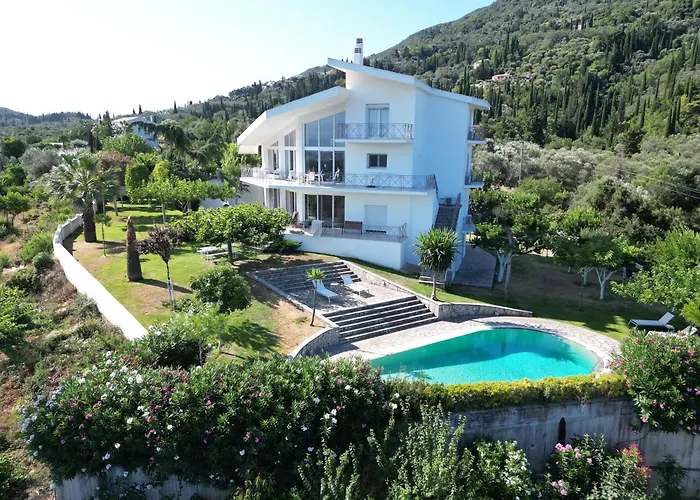 Alloggiando nel Mythos Luxury Apartments Corfu gli ospiti possono rilassarsi sulla terrazza e si trova a circa 4 km dai Pontikonissi. L'appartamento dispone di Wi-Fi e di un parcheggio privato gratuito nella struttura.